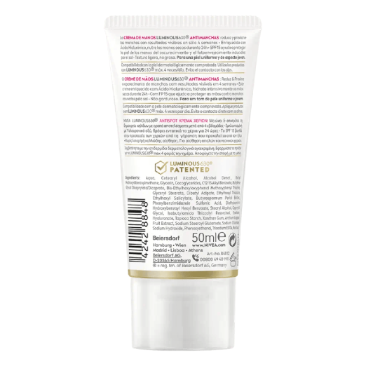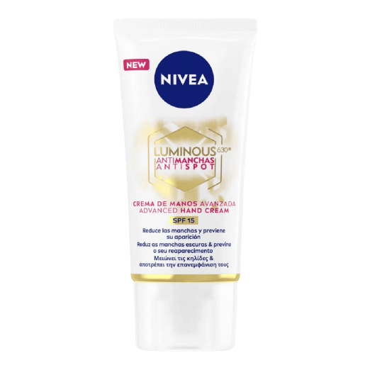 كريم اليدين Nivea Luminous630 Anti-Dark Spot هو كريم مرطب لجميع أنواع البشرة يعمل على ترطيب البشرة وحمايتها وتقليل البقع الداكنة على اليدين بشكل واضح.