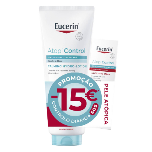 Eucerin AtopiControl Hydro‑Lotion + Acute Care Cream intensely hydrates atopic skin, soothes irritation, and protects the skin barrier.