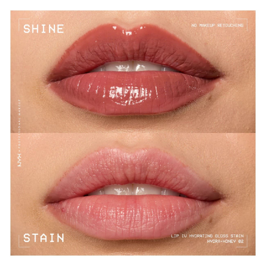 NYX Wet Shot Lip IV Stain Hydrating Gloss is a hydrating lip gloss that delivers a long-lasting, mirror-like finish, leaving lips smooth, even, comfortable, and with an intense, luminous color.