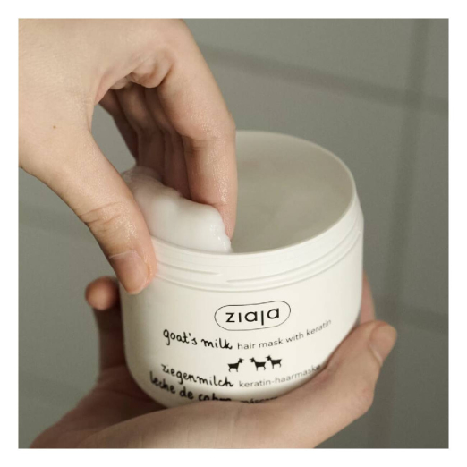 Apply Ziaja Goat’s Milk Keratin Hair Mask to damp hair after washing with shampoo. Leave on for 3–5 minutes and rinse thoroughly.