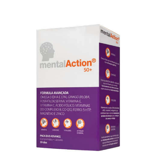MentalAction 50+ Multivitamin Tablets + Capsules Cognitive Function is a food supplement designed for adults aged 50 and over that supports cognitive function, mental performance, and vitality, helping to boost daily energy, reduce tiredness and maintain brain and psychological well-being.