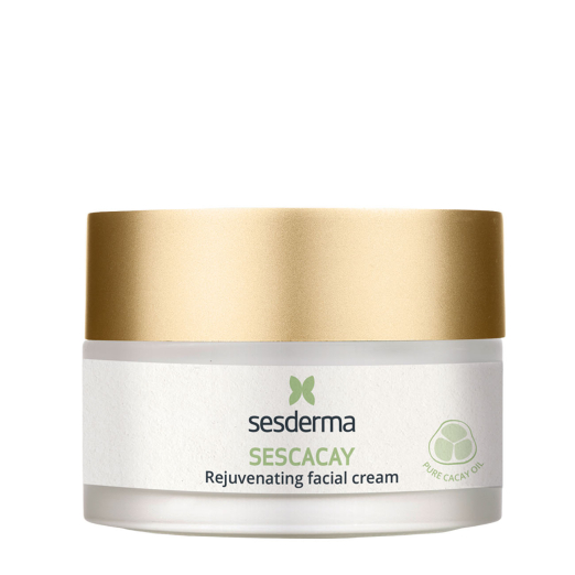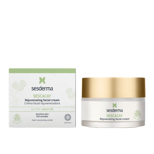 Sesderma Sescacay Rejuvenating Facial Cream improves visible signs of aging while hydrating, soothing, and enhancing firmness and elasticity in sensitive skin.