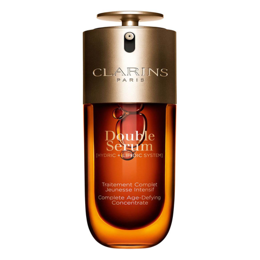 Clarins Double Serum is an anti-aging serum for all skin types, targeting wrinkles, loss of firmness, and dullness of the skin.