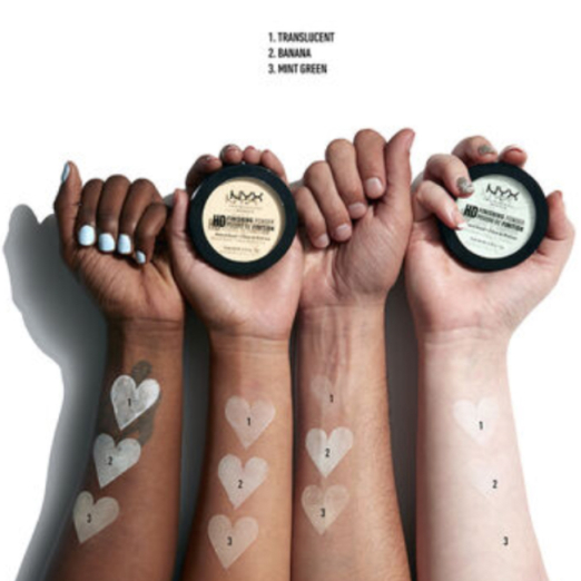 NYX HD Finishing Powder is a compact, correcting and mattifying mineral powder for all skin types. Shade: Banana (light yellow).