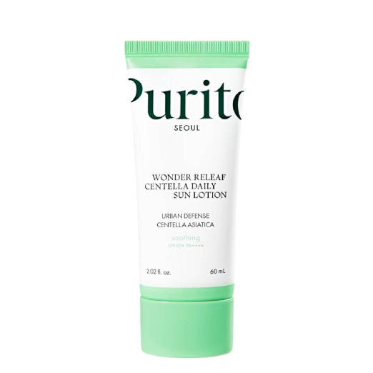 Purito Wonder Releaf Centella Daily Sun Lotion SPF50 provides daily sun protection and skincare benefits.