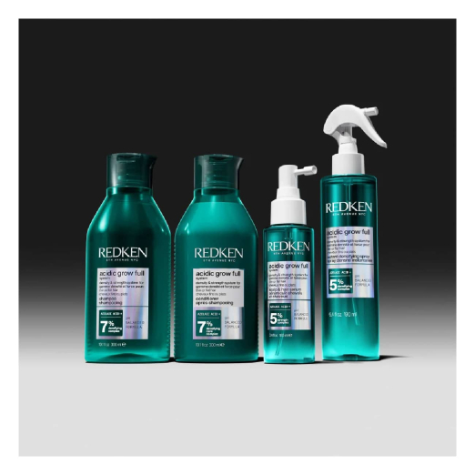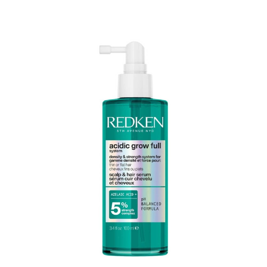 Redken Acidic Grow Full System is a serum for all hair types focused on stimulating the scalp and increasing hair density.