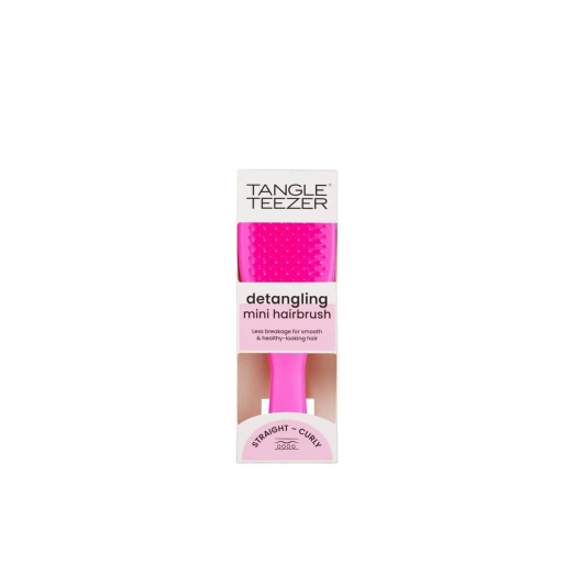 Use the Tangle Teezer Mini Ultimate Detangler Runway Pink Hairbrush to gently detangle your hair, starting at the ends and working your way up to the roots. It can be used on dry or wet hair.