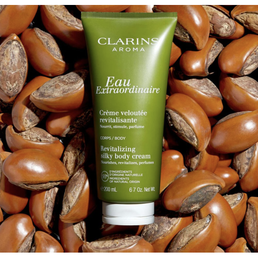 La crema corporal Eau Extraordinaire Crème Veloutée Revitalisante de Clarins proporciona una hidratación intensa y revitalizante, dejando la piel suave y radiante.