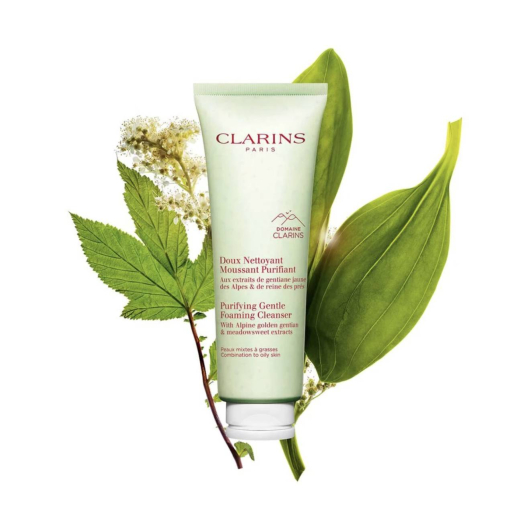 La espuma limpiadora purificante suave de Clarins proporciona una limpieza eficaz, dejando la piel purificada y fresca.
