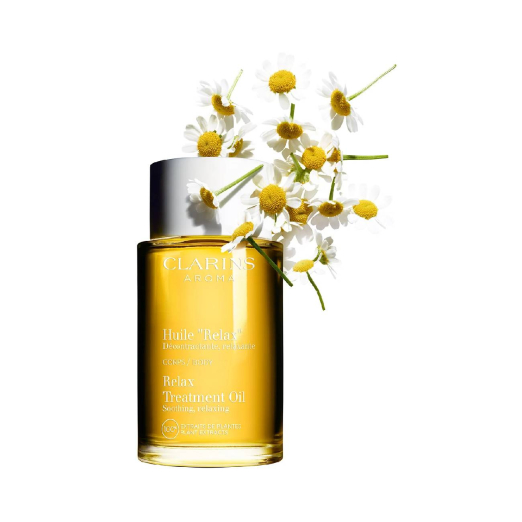 El aceite relajante Huile Relax de Clarins proporciona una hidratación intensa y un momento único de relajación.
