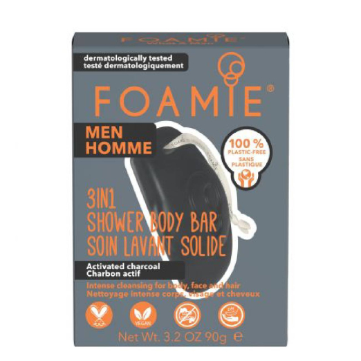 3-in-1 Foamie Men Bar that deeply cleanses with activated charcoal