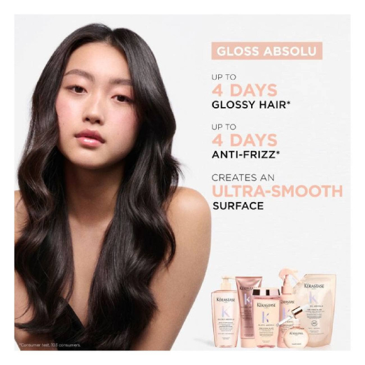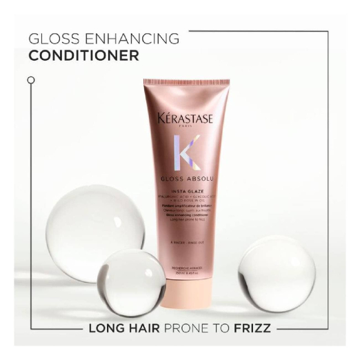 Kérastase Gloss Absolu Insta Glaze Conditioner ist ein glanzverstärkendes Produkt für langes Haar, das zu Frizz und mangelnder Geschmeidigkeit neigt.