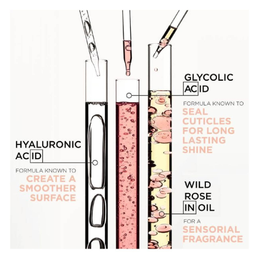 - Hauptinhaltsstoffe: Hyaluronsäure, Glykolsäure, Wildrose in Öl