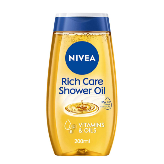 Apply Nivea Care Shower Oil during the shower, on wet skin. Massage gently and rinse with water.