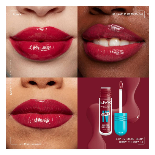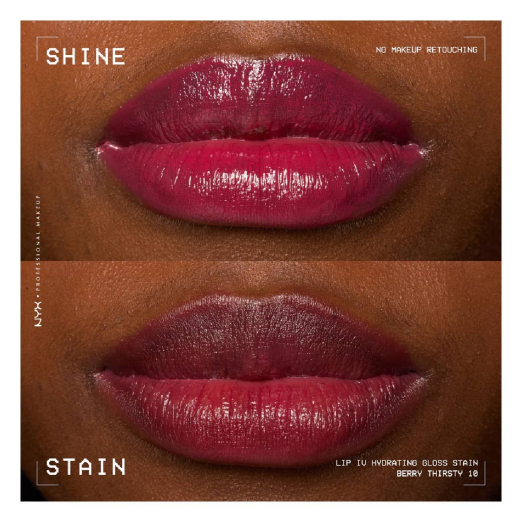 NYX Wet Shot Lip IV Stain Hydrating Gloss is a hydrating lip gloss that delivers a long-lasting, mirror-like finish, leaving lips smooth, even, comfortable, and with an intense, luminous color.