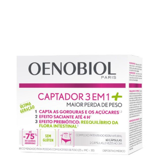 Oenobiol 3-in-1 Captor + Capsules 60 units captures and eliminates excess fats, sugars and calories.