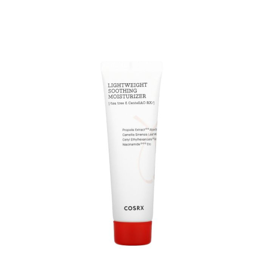 Con un efecto hidratante y reparador, la crema hidratante ligera y calmante Cosrx es una crema hidratante diaria que mantiene el equilibrio de la piel propensa al acné.