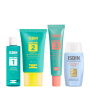 Este set contiene un gel limpiador purificante para rostro y cuerpo, una crema gel que ayuda a reducir las imperfecciones y matificar el rostro, un tratamiento local que ayuda a secar los granos y un fluido solar ultraligero.
