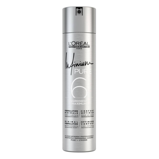 L'Oréal Professionnel Infinium Pure Strong Hold Hairspray es una laca para el cabello con una fórmula hipoalergénica y minimalista que la diferencia de otras lacas.