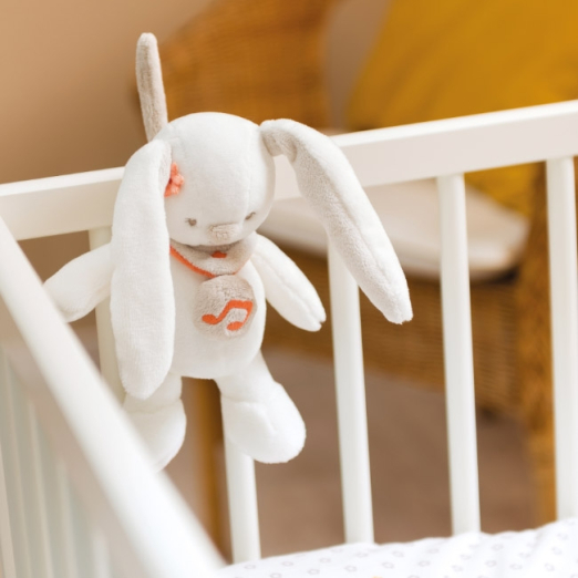 Siga siempre las instrucciones del embalaje del conejo de peluche musical Mia Beige de Nattou Mia & Basile .