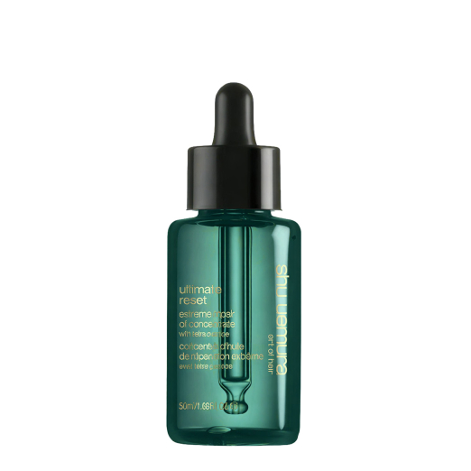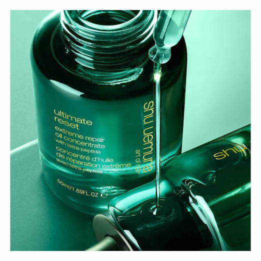 Shu Uemura Ultimate Reset Intensive Repair Hair Oil deeply repairs damaged hair, reduces breakage, and restores softness and shine with a lightweight, non-greasy finish.