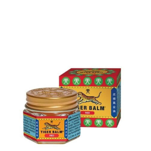 Tiger Red Tiger Balm stimulates blood circulation, providing a warming sensation to reduce muscle and joint pain.