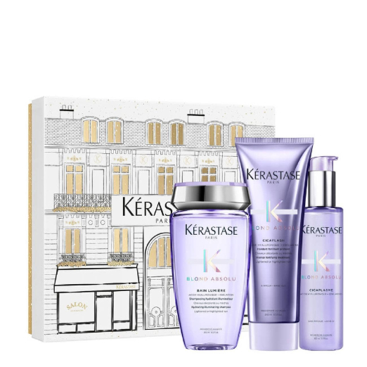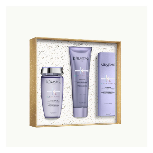 Kérastase Blond Absolu Fondant Holiday Set is a limited-edition trio designed to care for bleached hair.
