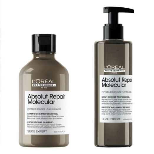 L'Oréal Professionnel Absolut Repair Molecular Coffret is a care set for hair damaged, colored or weakened by chemical treatments.