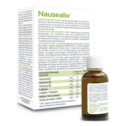 Nausealiv is an oral solution for adults and children focused on reducing nausea and supporting digestion.