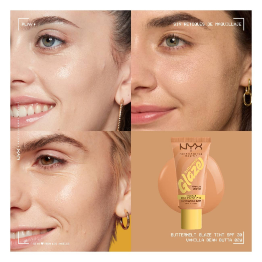 NYX Buttermelt Glaze Tint SPF30 leaves the skin radiant, nourished, and with a natural, silky finish, while protecting it from UV radiation.