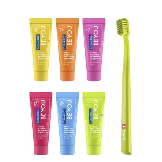 Experience unique flavors and have fun taking care of your oral hygiene with the Curaprox Be You Kit Toothpastes + Toothbrush.