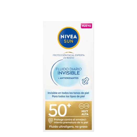 Nivea Sun UV Fluid Face SPF50+ effectively protects the skin against UVA/UVB rays, premature aging, and keeps the skin hydrated, mattified, and visibly healthy, without white residue.
