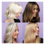 Envuelve el cabello en una rica espuma que neutraliza los tonos amarillos no deseados y potencia el brillo del color.