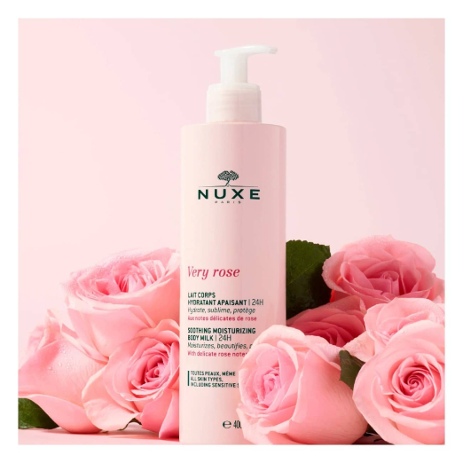 Nuxe Very Rose Moisturizing Body Milk is a body milk formulated to nourish the skin throughout the day, providing comfort and 24-hour hydration while leaving the skin delicately fragranced, making daily care a true moment of well-being.