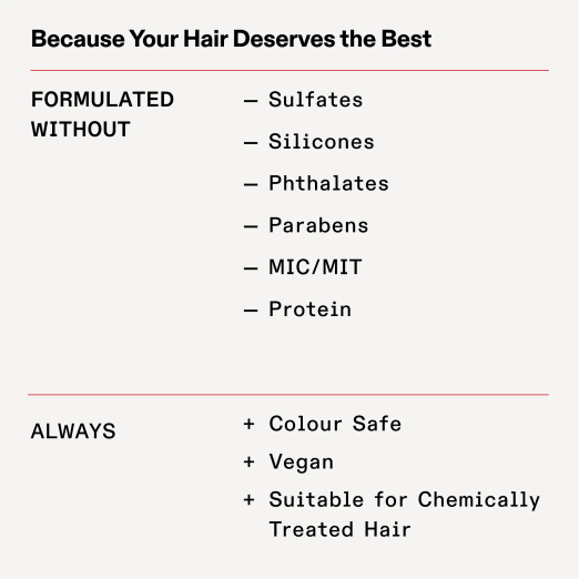 - Vegan formula, free from sulfates, silicones, parabens, and phthalates