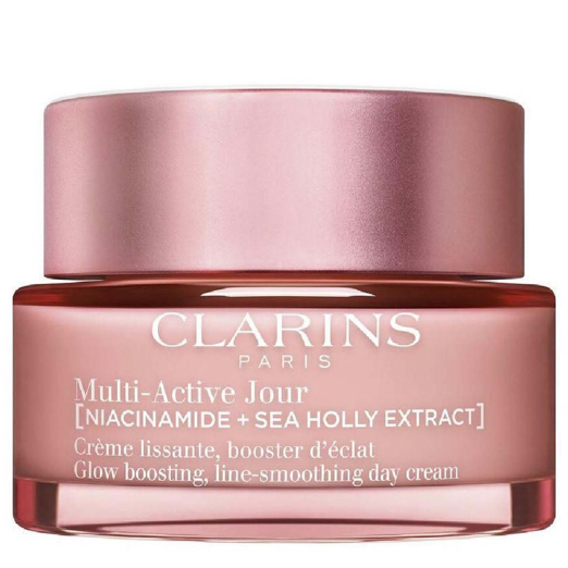 Clarins Multi-Active Day Cream Smoothing Illuminator for Dry Skin is a rich, revitalizing moisturizer targeting the first signs of aging, dryness, uneven texture, and dullness.