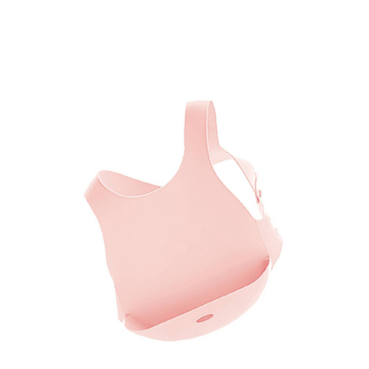 The Minikoioi Flexi-Bib Adjustable Silicone Bib Pink 6m+ keeps baby's clothes clean during meals, being practical and functional.