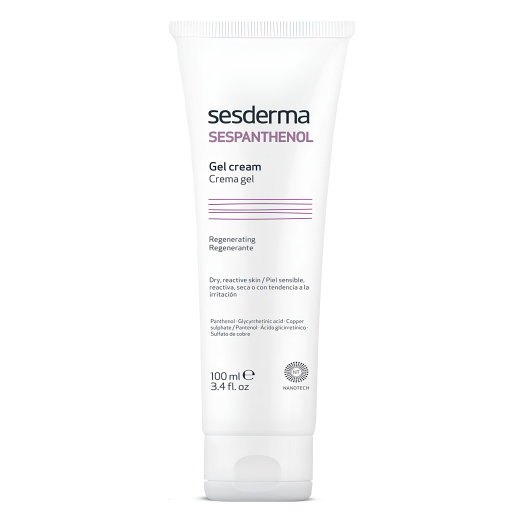 Sesderma Sespanthenol Cream-Gel hydrates, repairs, and protects sensitive or damaged skin while soothing irritation and keeping it soft, comfortable, and healthy.