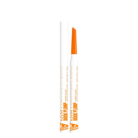 NYX Duck Plump Plumping Lip Liner is a longwear, retractable lip liner that defines, shapes, and visibly plumps the lips using spicy ginger and capsicum for a fuller-looking pout.