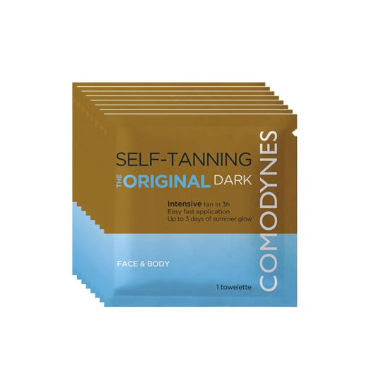 مناديل التسمير الذاتي المكثفة من Comodynes تمنح بشرتك لونًا تسميرًا مكثفًا وموحدًا في غضون ثلاث ساعات فقط، وتحافظ على نعومة بشرتك وترطيبها. مناسبة للوجه والجسم ولجميع أنواع البشرة.