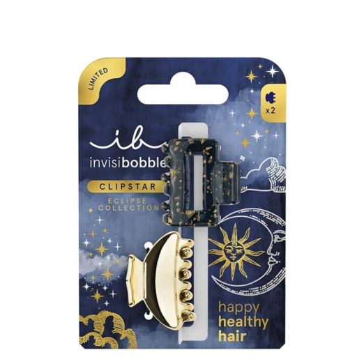 مشابك الشعر Invisibobble Clipstar Eclipse Lunar هي زوج من المشابك الأنيقة المستوحاة من سحر الكون، لإضفاء لمسة من اللمعان الراقي على الشعر.