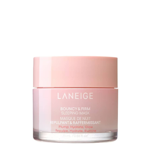 The Laneige Bouncy & Firm Sleeping Mask is a plumping and firming night mask that provides firmer and more hydrated skin. It contains hyaluronic acid and apricot seed extract for hydrated and firm skin.