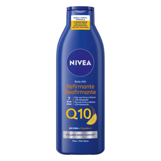 Nivea Q10 Body Milk هو لوشن للجسم مخصص للبشرة العادية إلى الجافة التي تحتاج إلى ترطيب مكثف وزيادة تماسكها.