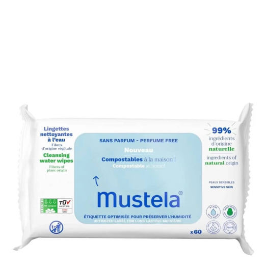 Mustela 0% Perfume Cleansing Wipes are daily care wipes designed for the sensitive skin of newborns and babies, gently cleansing while leaving the skin soft and comfortable, and are ideal for quick and effective cleansing at home or on the go, without the need to rinse.