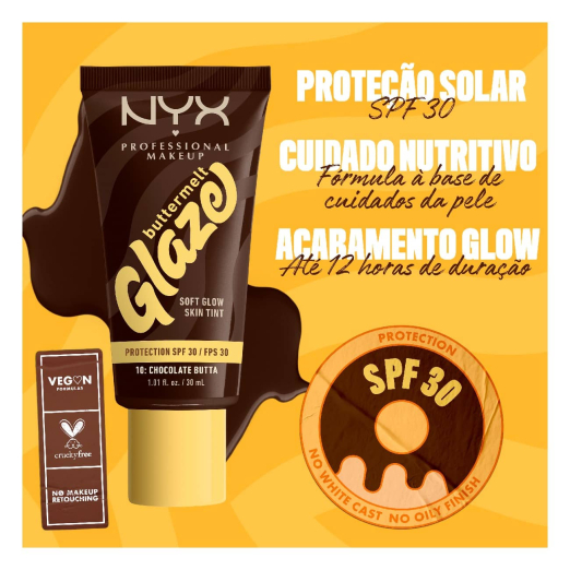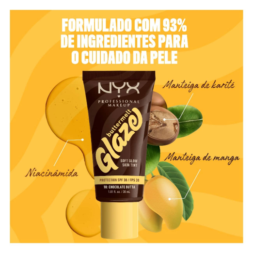 NYX Buttermelt Glaze Tint SPF30 leaves the skin radiant, nourished, and with a natural, silky finish, while protecting it from UV radiation.