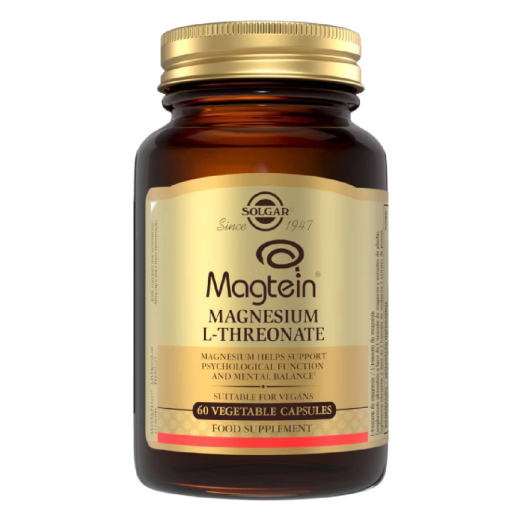 Solgar Magtein Magnesium L-Threonate Capsules help maintain psychological function and mental balance.