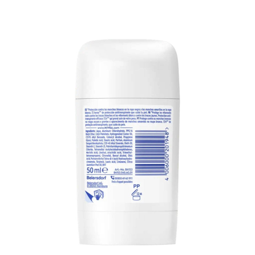 Nivea Black & White Invisible Original Stick offers effective protection against odor and stains, maintaining freshness throughout the day without damaging clothes.
