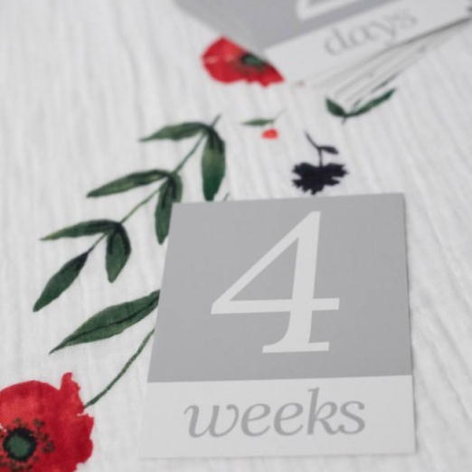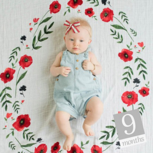 Lay your baby on the Little Unicorn Summer Poppy Photography Sheet and add the signs for a more personalized touch. Take adorable photos.