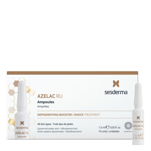 Sesderma Azelac RU Depigmenting Ampoules 10pcs reduces blemishes and evens out skin tone.