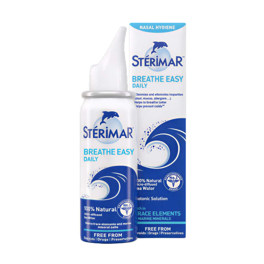 Stérimar Breathe Easy Daily is a 100% natural isotonic sea water nasal spray that cleanses and moisturizes the nasal passages, helping to improve breathing comfort with daily use.